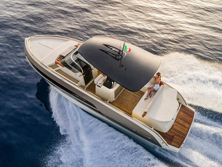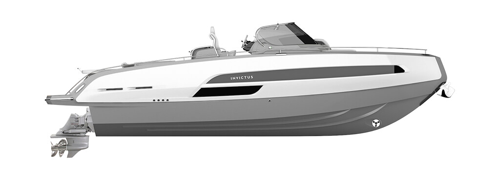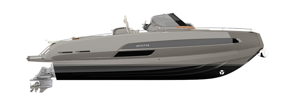 GT320 is the size that lies exactly between the series sisters, GT370 and GT280, combining their predominant characteristics, ideal for those who do not like compromising. It can be equipped with a single engine, such as model GT280, but it is also the smallest in the Invictus range to be equipped with dual motorization, such as GT370. From the GT range, it has inherited the key styles, design, comfort and performance. Rich material and strong character, volume balance and the elegance of the lines give back the distinct perception of beauty in every detail. Its compact dimensions do not deny the stated intention of matching the typical luxury level of larger boats. The most demanding ship-owners, seeking stylish, comfortable and performing boats will have nothing to give up. Also for GT320 accessories and equipment are customizable with Atelier Invictus proposals.