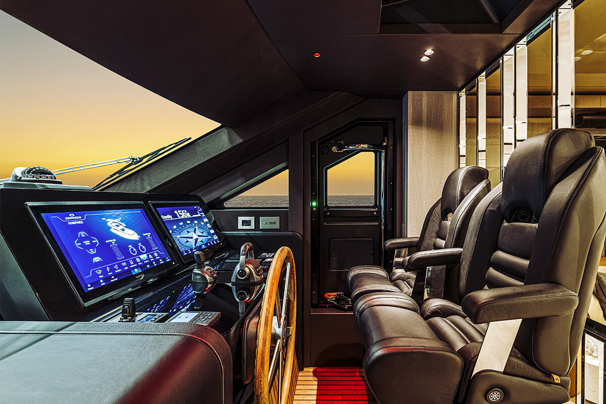 This new model enhances the line-up of Cranchi Yachts’ Flagship Collection and makes it even more complete, going to join the Settantotto 78 and Sessantasette 67.