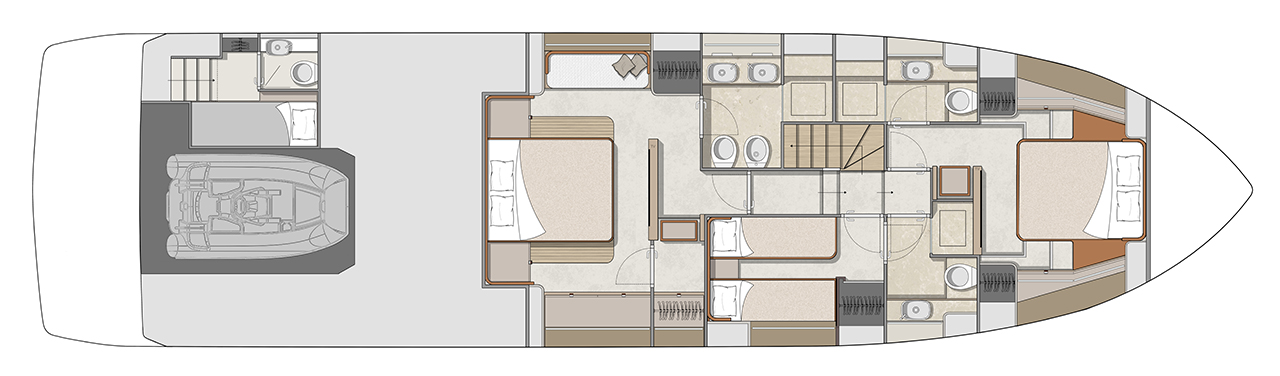 For this new project, the art direction has once again been handled by Christian Grande, guaranteeing family feeling with the company’s two widely appreciated larger models. While it may be the smallest of the three, the Sessantadue 62 ft gives up nothing in terms of having distinctive and peculiar characteristics both in its exterior lines and the choice of interior decor.