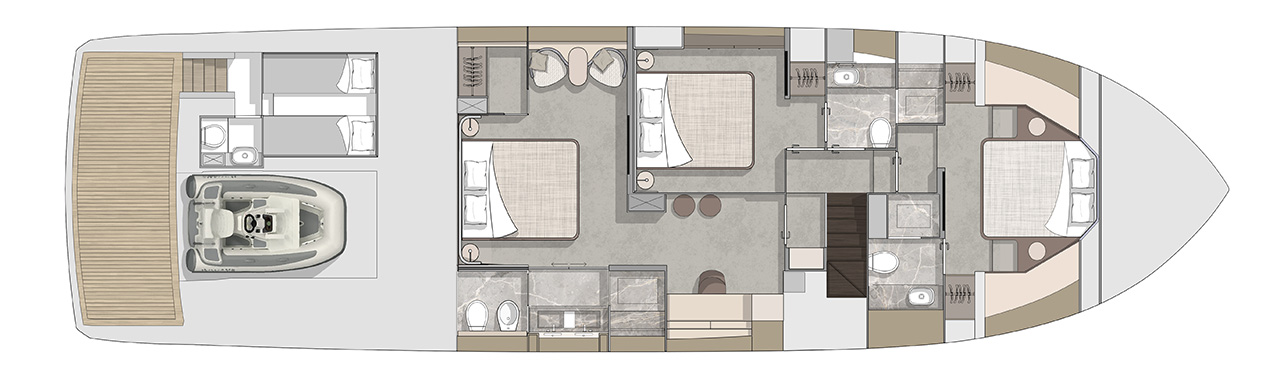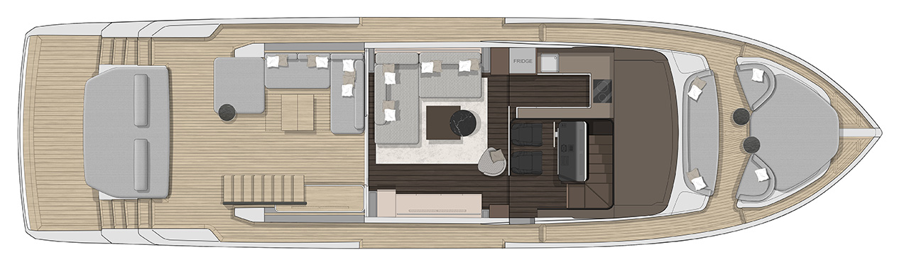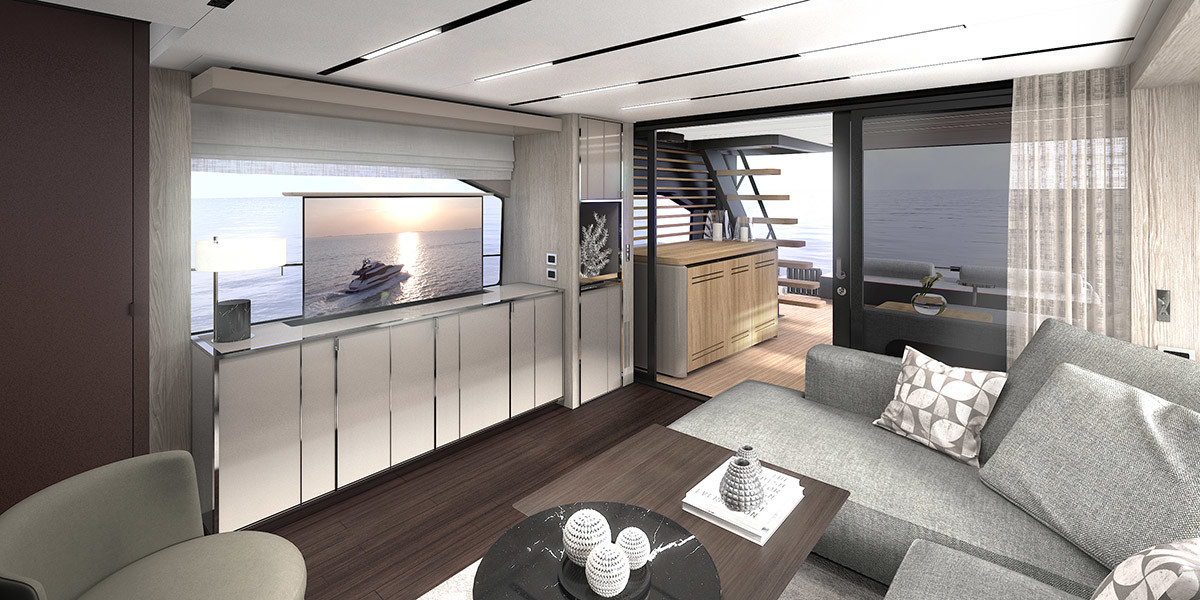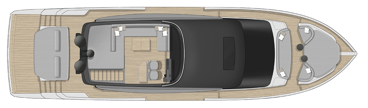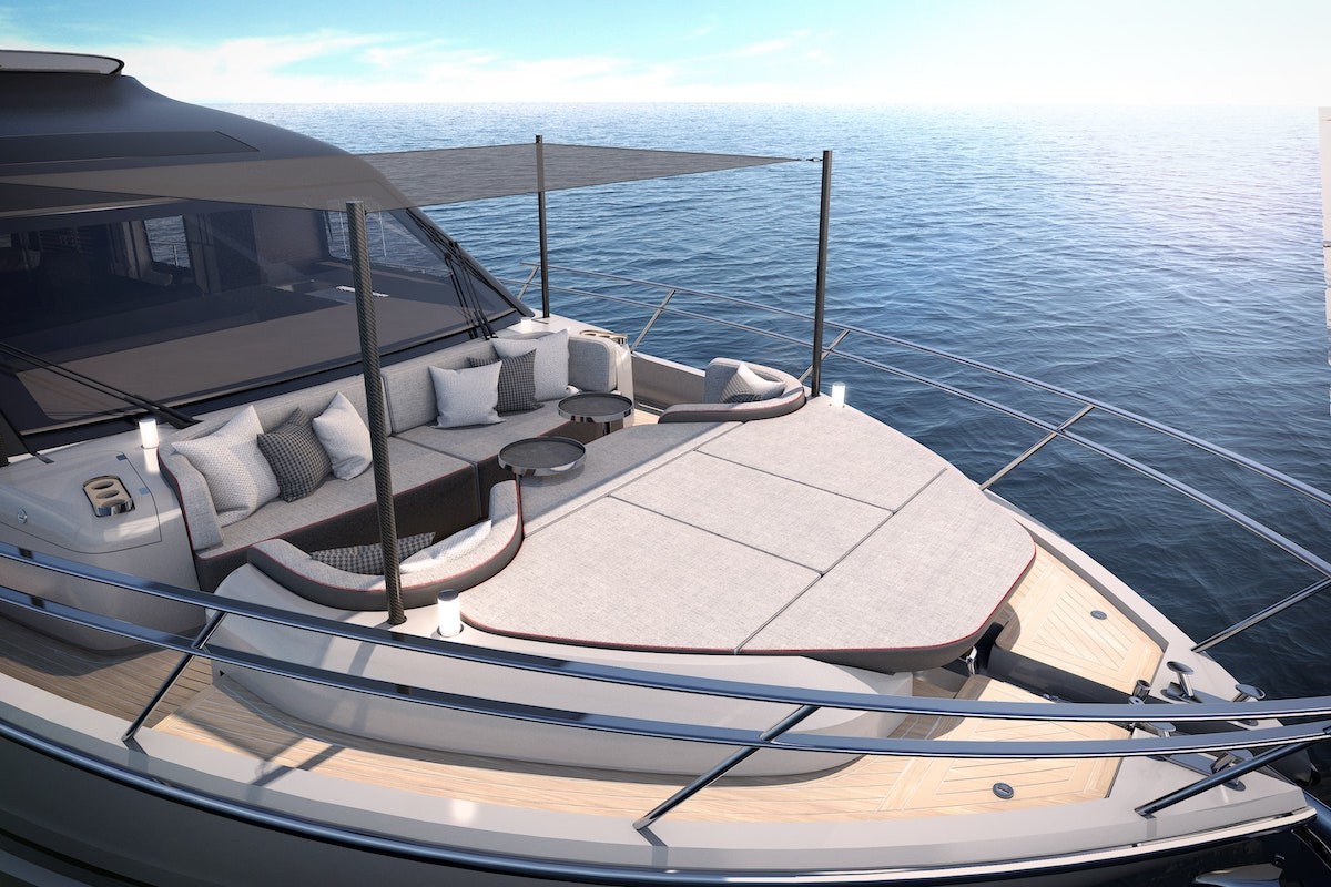 The new model will be called Cranchi Sessantasette 67 ft Corsa. Corsa expresses passion, performance, freedom, and the future. Such values are perfectly represented by the innovative concept and unmistakable art direction of the new yacht: an unconventional sportbridge to experience the sea, navigation, and moments at anchor in a free and instinctive way.